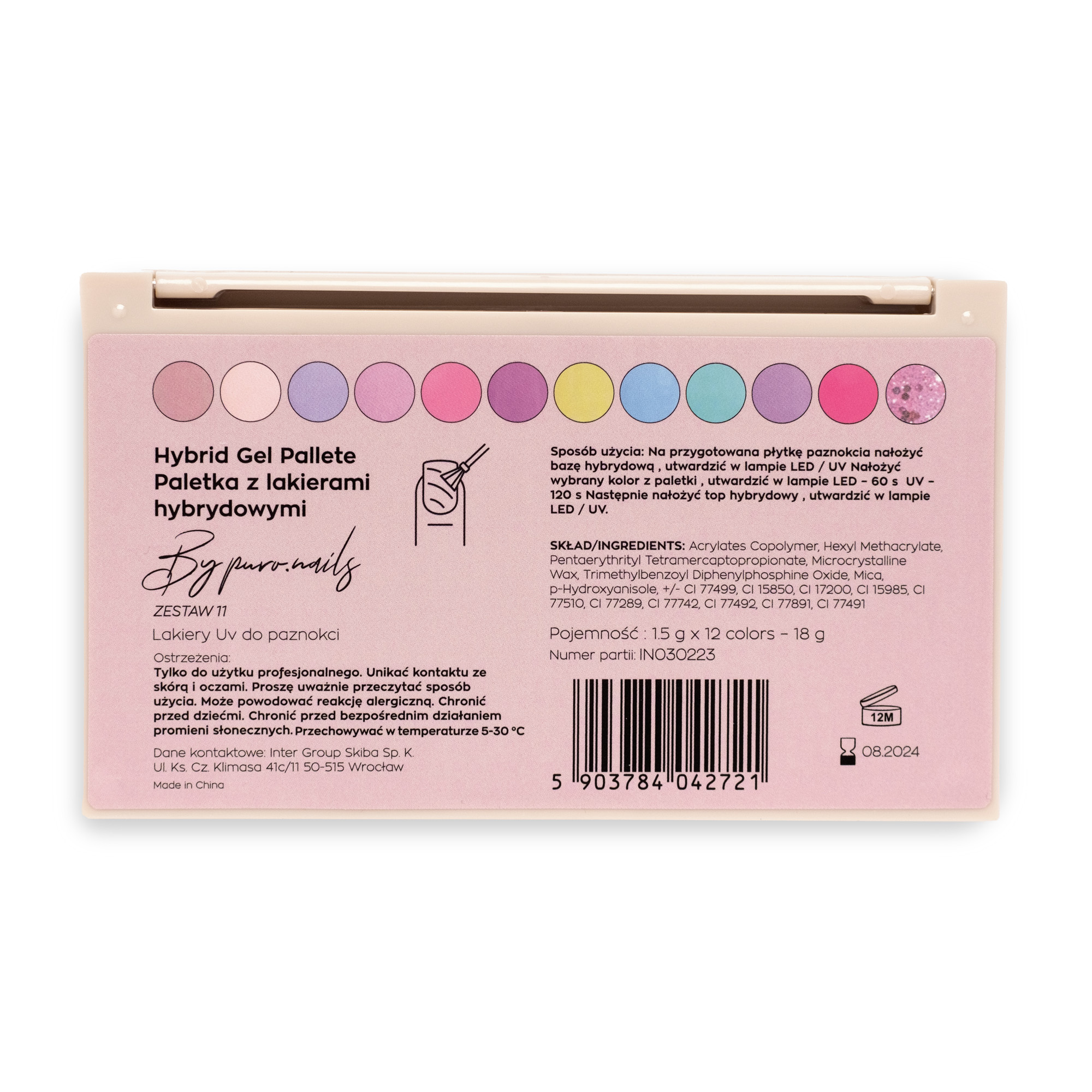 The 12-color palette recommended by Puro Nails itself is a selection of carefully curated options for nail styling. Our Puro has chosen only sweet colors for you. The polishes, enclosed in a compact palette, are perfect for home use or while traveling. They don’t take up much space, and you’ll use the polishes to the very end. Thanks to their properties, the hybrid nail polish series in the palette won’t flood the cuticles, allowing everyone to create a manicure worthy of a specialist.